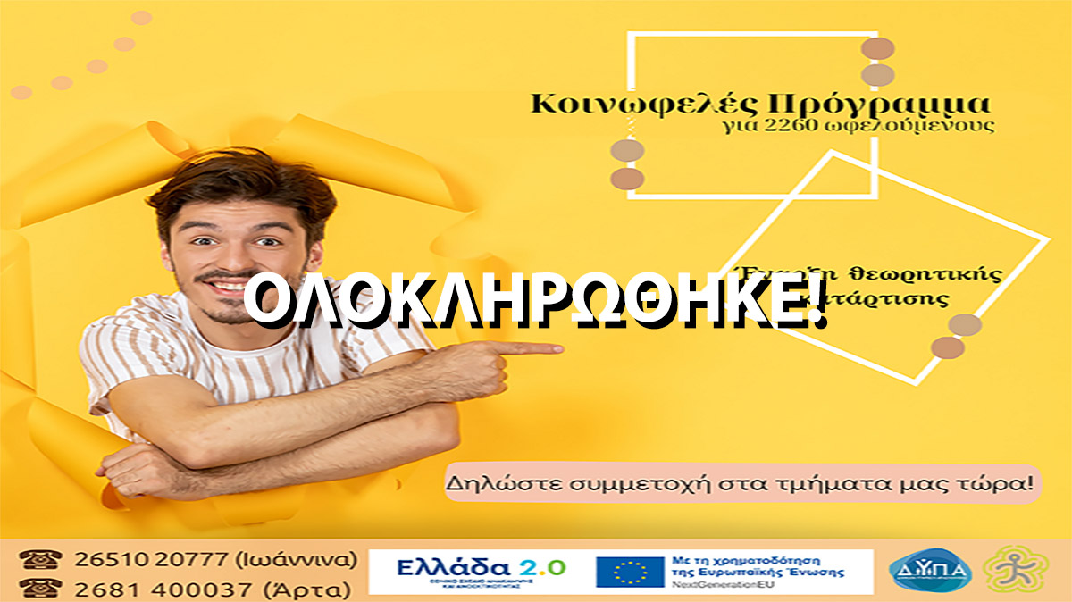 Αυτό το επιδοτούμενο πρόγραμμα έχει ολοκληρωθεί. Κλικ εδώ να δείτε όλα τα ε...