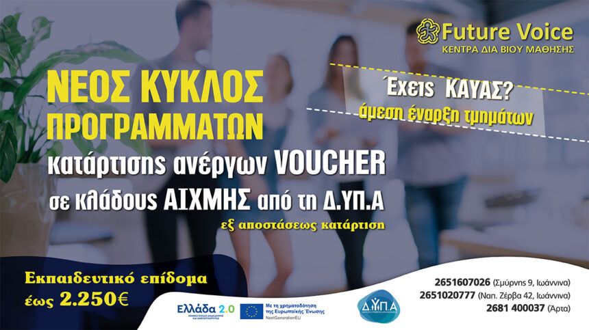 Επιδοτούμενο πρόγραμμα Voucher ανέργων σε κλάδους αιχμής με επιδότηση έως 2250€ (εξ αποστάσεως)